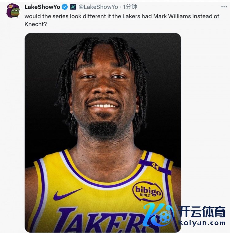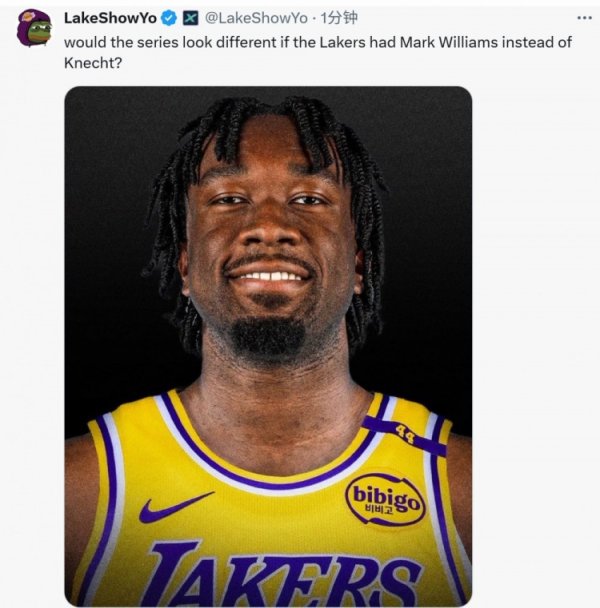 赛后湖东谈主自媒体LakeShowYo发推写谈:“若是湖东谈主领有马克-威廉姆斯而不是克内克特全讯买球网体育信息,系列赛走势会不相似吗?”