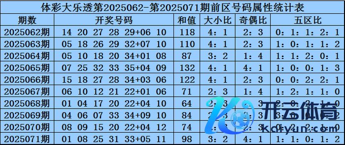 体彩大乐透第2025072期前区号码属性分析: