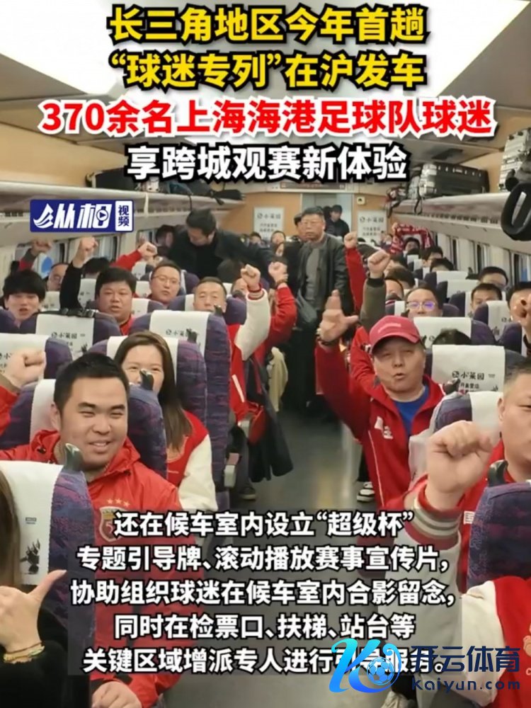 3月1日讯 据东方网报说念,今天上昼10时,G7008次列车载着370余名上海海港足球队球迷从上海站驶出,去往策画地江苏南京不雅看2026中国足协超等杯决赛。 这是长三角地区2026年开出的首趟“球迷专列”。为营造浓厚赛事氛围,铁路部门多措并举普及球迷出行体验。上海站开拓进站绿色通说念,指示球迷专属候车室,还在候车室内指示“超等杯”专题指令牌、蜕变播放赛事宣传片,协助组织球迷在候车室内合影贪恋,同期在检票口、扶梯、站台等要津区域增派专东说念主进行指令做事。 据悉全讯买球网体育信息,比赛收尾后,