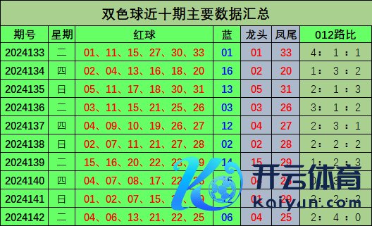 双色球上期开出奖号:040613212225+06,区间比2:3:1全讯买球网体育信息,奇偶3:3。 红球分析: 奇偶比分析:上期奇偶比是3:3,近十期奇偶比3:3出现3次,4:2出现3次,5:1出现2次,1:5出现1次,2:4出现1次,合座奇偶比34:26,概括十期数据来看奇数号码走势抓续热出,比值4:2和3:3出现次数最多,本期看深嗜数号码走势较好,推选奇偶比是4:2。 三区定位分析: 红一区(01-11):上期开出2个奖号,最近10期该区开出22个号码,合座来看较其他区走势还是较热,本期