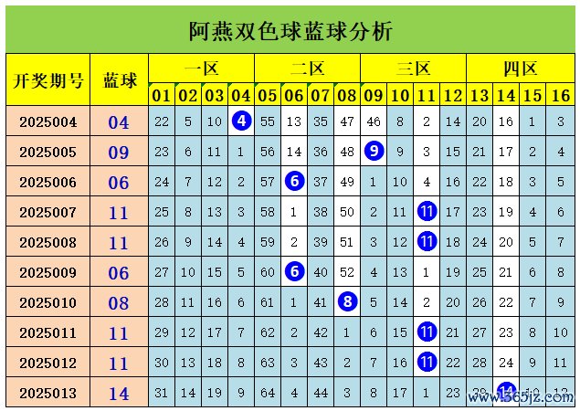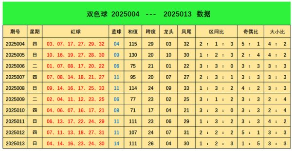 上期归来:双色球第2025013期开出奖号:红球04、14、16、23、24、30;蓝球14,其中红球三区比为1:2:3,奇偶比1:5,大小比为3:3,蓝球开出2路号码14。