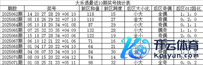 体彩大乐透第25071期开出奖号:01 08 25 31 33 + 05 11,其中,前区奖号首尾间距为32,和值为98体育集锦,奇偶比为4:1,012路比为1:3:1,大小比为3:2。
