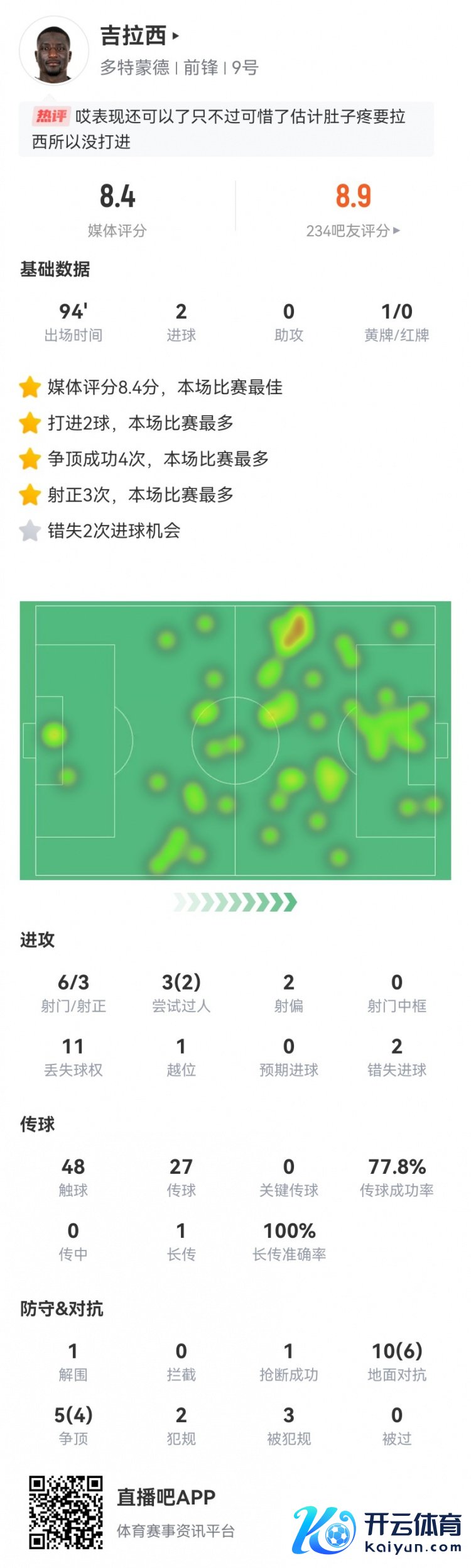 体育集锦 7月2日讯 多特辞世俱杯16强战2-1打败蒙特雷,吉拉西本场数据如下: 首发踢满全场 2球 6射门、3射正 3过东说念主、2告捷 2错失紧要契机 49触球 27传球、21告捷,告捷率78% 1长传、1告捷 16起义、10告捷 11丢失球权 2犯规 3造犯规 1越位 2突围 1抢断 获评8.4分全场最高体育集锦