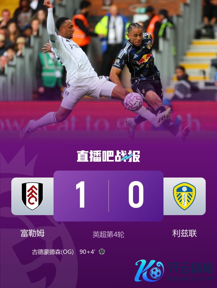 古德蒙德森在第94分钟打进乌龙球,令利兹联痛失好局,最终0-1不敌富勒姆。