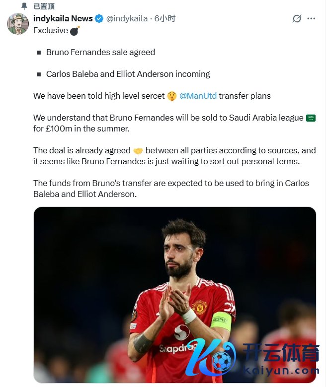 绿帽哥indykaila News独家音问,曼联将以1亿镑价钱将B费卖给沙特联球队。