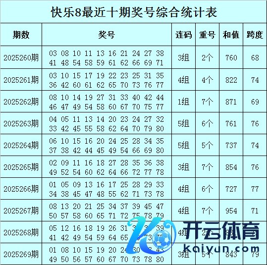 福彩适意8第2025269期开出奖号:01 08 10 15 19 20 24 30 33 43 49 50 56 57 60 67 70 73 78 80,其中奖号和值为843,跨度为79,包含5个重号19、33、49、70、73,包含连码19 20、49 50、56 57。