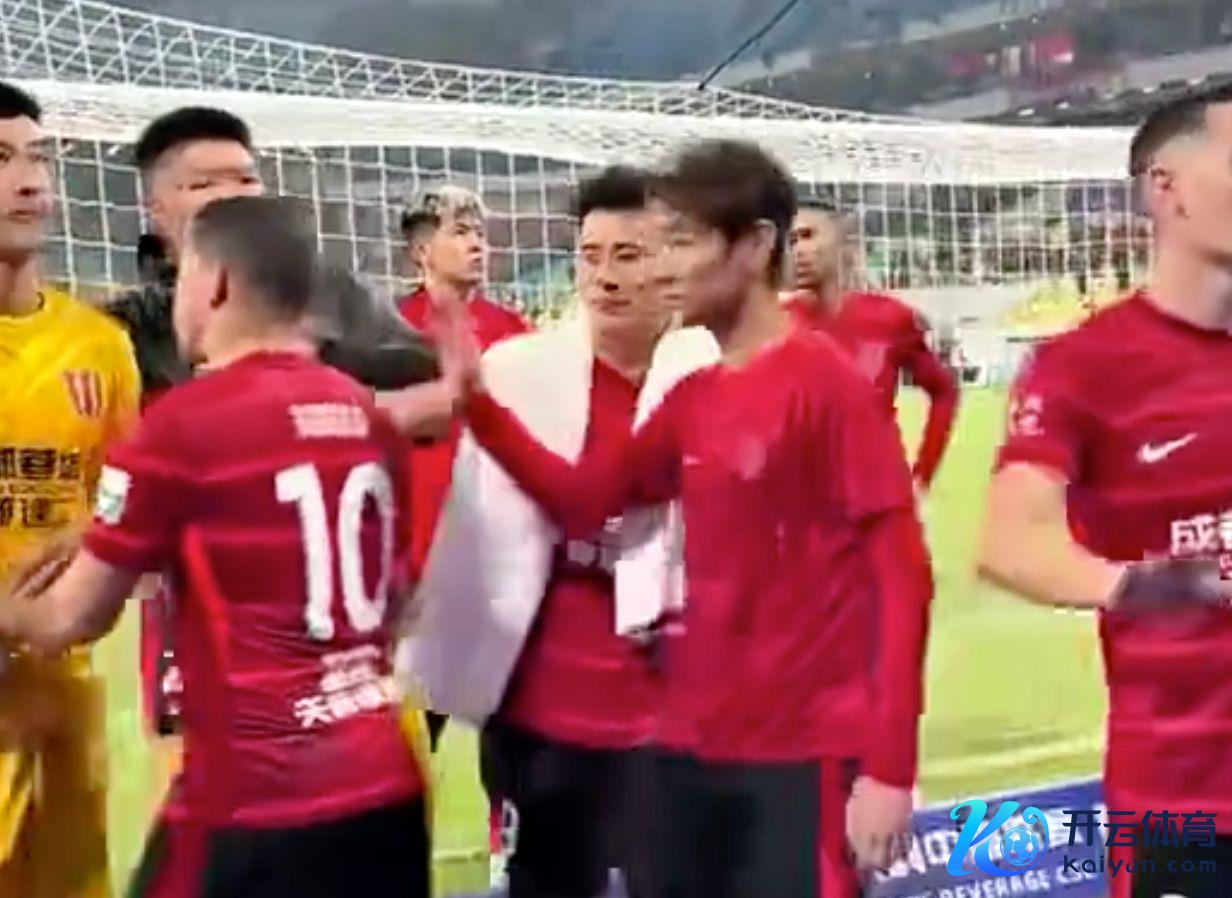 韦世豪一看场面差异,赶快走过来拦下,让他不要再讲话了。韦世豪对着看台连说:“咱们的拖累。”接着,队长周定洋过来,把韦世豪拉走,让他也不要再说了。