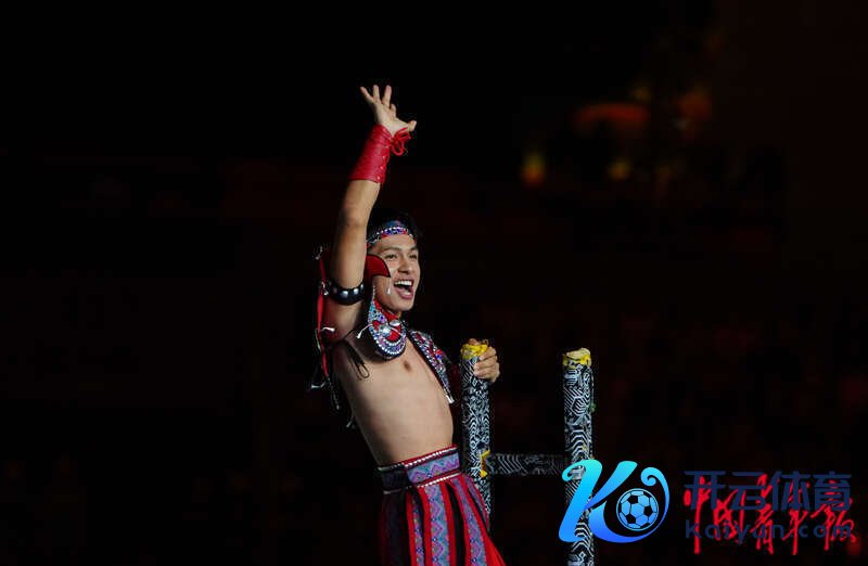 11月22日,海南三亚,第十二届寰宇少数民族传统体育绽放会开幕式上,台湾少数民族代表团入场。中青报·中青网记者 李峥苨/摄