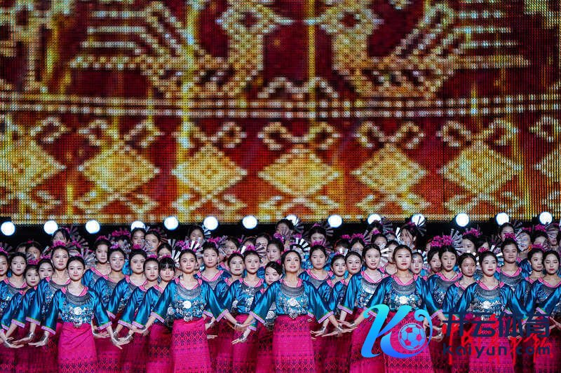 11月22日,海南三亚,第十二届寰宇少数民族传统体育绽放会开幕式,文艺扮演展示海南黎锦等文化元素。中青报·中青网记者 李峥苨/摄