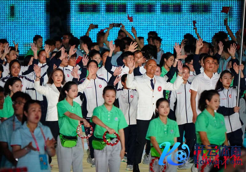 11月22日,海南三亚,第十二届寰宇少数民族传统体育绽放会开幕式上,香港代表团入场。中青报·中青网记者 李峥苨/摄