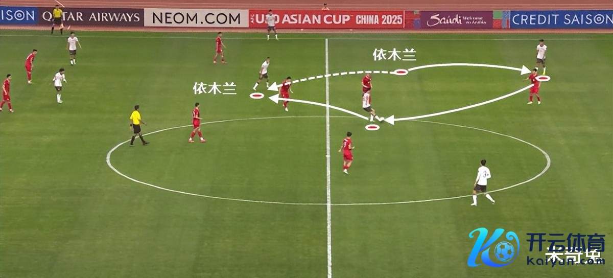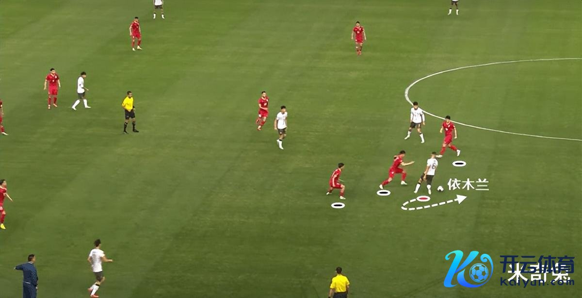 依木兰拿球后一个半回身带球过掉第又名防患东说念主,随后却堕入到3东说念主包围圈里。面临着强势上抢的吉尔吉斯斯坦球员,依木兰再次完成一个漂亮的转向和传球,随后上前插。