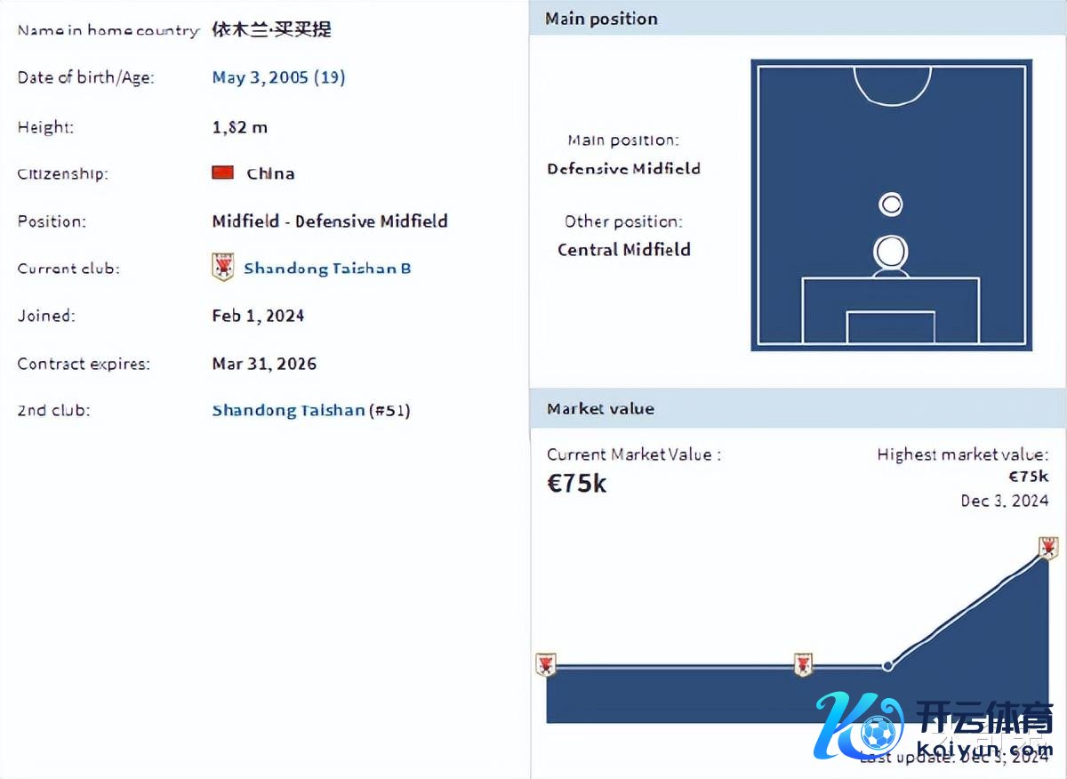 出身于2005年5月3日的依木兰从小就展现出我方在足球上的天禀,他被山东泰山青训相中,在何处得到了最好的成长环境。
