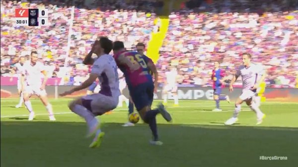 03月30日讯 西甲第29轮,巴塞罗那vs赫罗纳。比赛第30分钟,赫罗纳后卫弗朗西斯与杰拉德-马丁抵抗后捂脸倒地体育集锦,裁判判罚马丁犯规,回放看这下马丁似乎并未遭受弗朗西斯的脸,场边的弗里克看了也笑了。 体育集锦