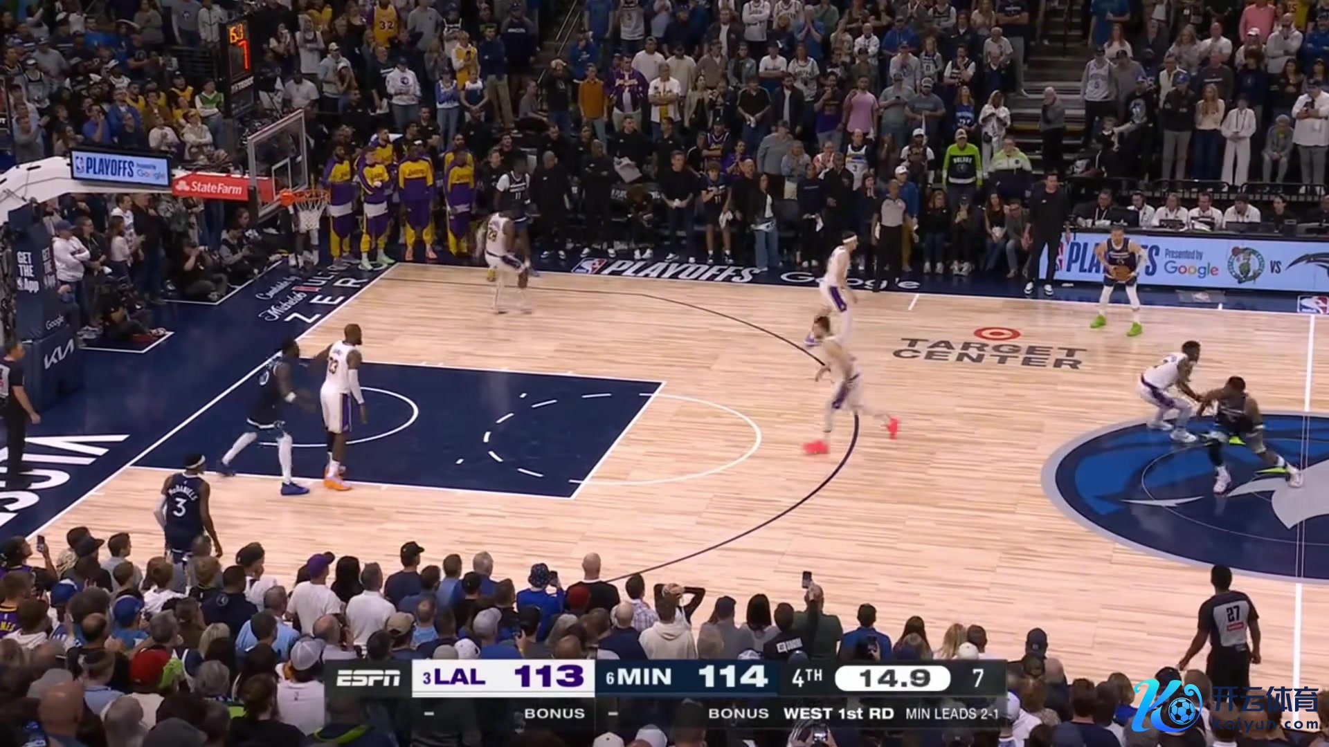 华子两罚全中后 詹姆斯径直给与发球 里夫斯三分不中 比赛戒指