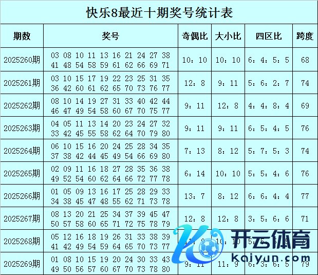 福彩欣慰8第2025269期开奖总结:01 08 10 15 19 20 24 30 33 43 49 50 56 57 60 67 70 73 78 80,其中奖号奇偶比开出9:11,大小比开出11:9,包含4个小奇号码:01 15 19 33,5个小偶号码:08 10 20 24 30,5个大奇号码:43 49 57 67 73,6个大偶号码:50 56 60 70 78 80。