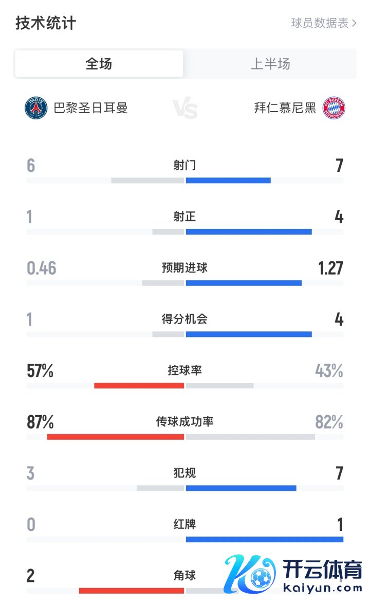巴黎vs拜仁半场数据:
