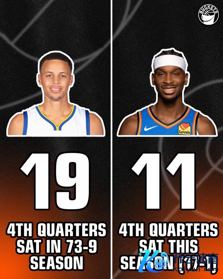 亚历山大也在18场比赛中,完成了11次三节打卡。而库里的73胜赛季体育录像/图片,三节打卡次数为19次。以现在雷霆的强势说明来看,亚历山大有望越过库里这一数据。