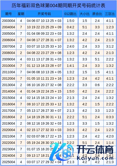 积年第2026004期双色球数据统计表