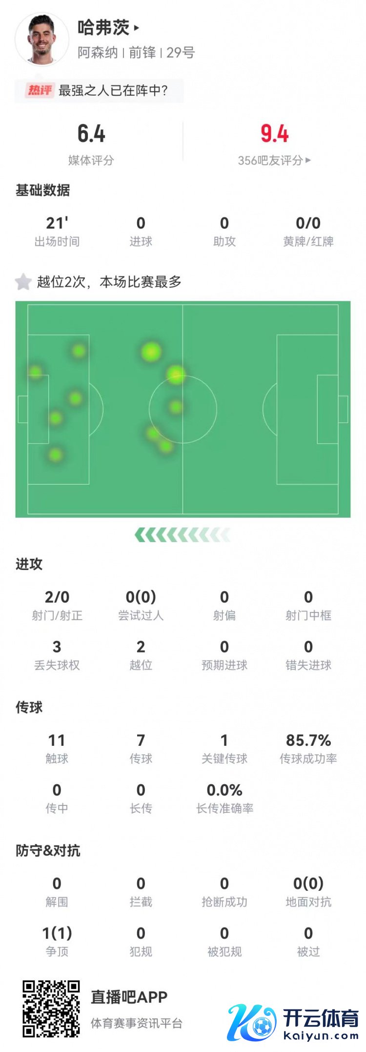 1月12日讯 阿森纳在本轮足总杯4-1打败朴茨茅斯,哈弗茨伤愈复出完成赛季第2次出场,本场数据如下: