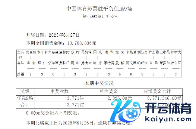 北京时辰6月27日,赢输彩第25092期任九开奖效力揭晓。本期任九开出3771注,单注奖金2,326元。本期任九投注总数为13,708,836元。
