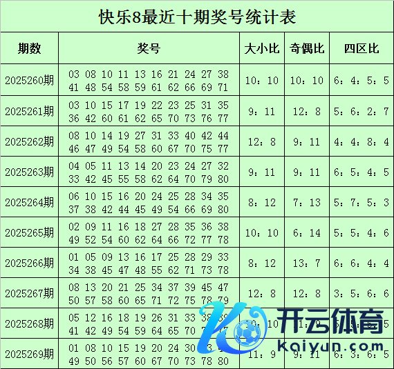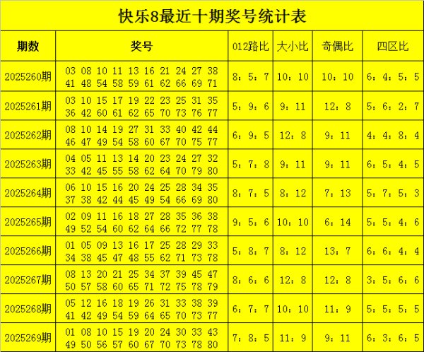 福彩温存8第2025269期开奖总结:0108101519202430334349505657606770737880,其中奖号四区比为6:3:6:5,奇偶比为9:11,大小比为11:9。 韩久温存8第2025270期奖号笼统分析 大小分析:最近5期大小 号码走势基本均衡,分别出现51枚和49枚,上期大号走热,开出了11枚,本期适合瞻仰小 号回补,参考大小比9:11。 奇偶分析:最近5期号码奇偶比为51:49,奇偶号码出现基本均衡,上期奖号奇偶比为9:11,偶数号码开出较多,本期珍惜奇数号码缓
