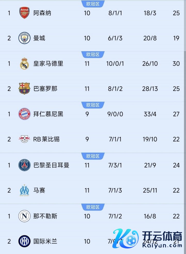 11月03日讯 五大联赛又战罢一轮,刻下的榜首球队分歧是:阿森纳、皇马、拜仁、巴黎和那不勒斯。 其中前四家在欧冠也都是全胜战绩,并占据欧冠前五名中的四席。仅那不勒斯排在欧冠第23位,比拟低。 欧冠此前3轮战罢后全胜队刚好是五大联赛各一支,仅国米在自家的联赛不是排第一。国米暂列意甲第2,1分过期那不勒斯。 本周的欧冠,法甲班霸巴黎和德甲班霸拜仁将会正靠近决,他俩至少有一队没法连接保捏全胜。英超领头羊阿森纳将客战布拉格斯拉维亚,西甲的榜首皇马则是客战英超第3利物浦。 体育赛事直播