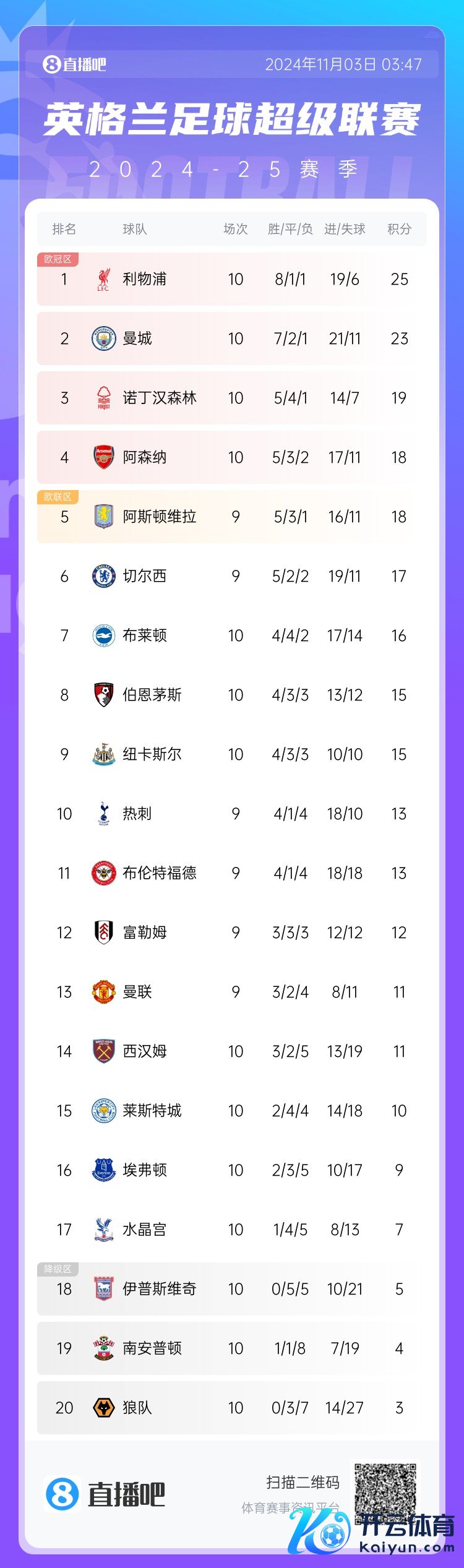 英超积分榜:利物浦6轮不败&2分领跑 曼城遇到联赛首败