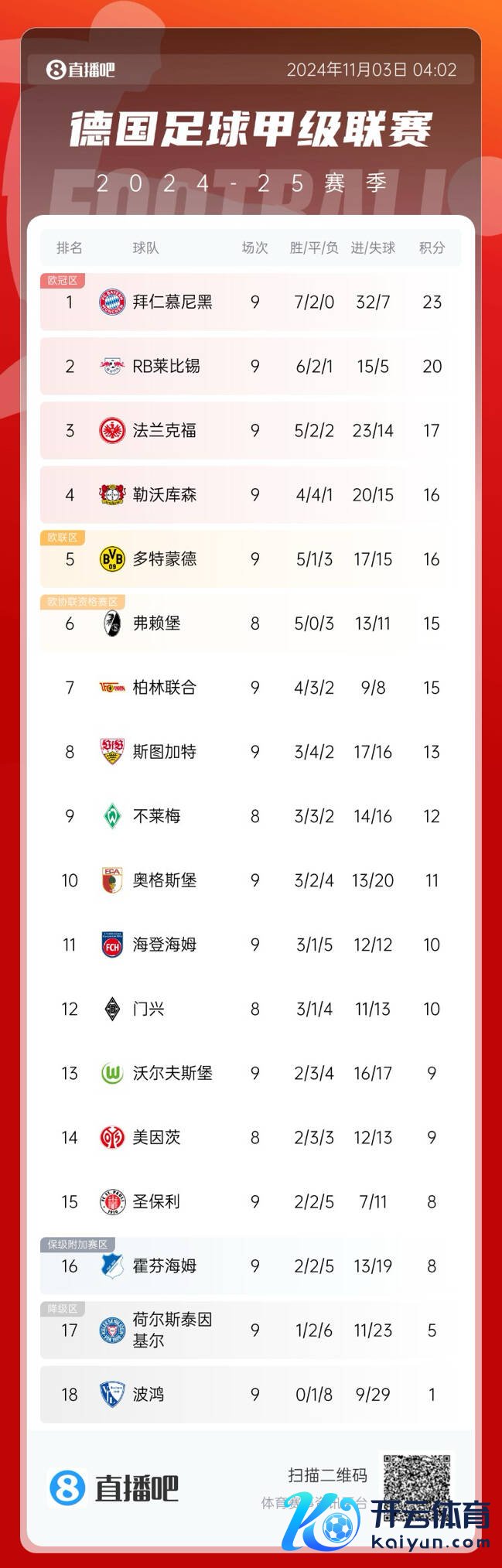 凯恩狂喜!德甲积分榜:莱比锡不敌多特,拜仁3分上风领跑.