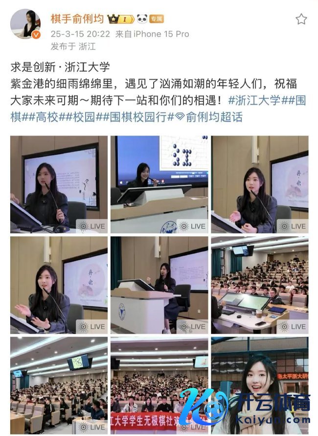 活动舍弃后,俞俐均更是在个东谈主主页晒出了本日现场的像片,并配文“求是改革·浙江大学;紫金港的细雨绵绵里,碰见了澎湃如潮的年青东谈主们,祝贺群众改日可期~期待下一站和你们的相遇!”